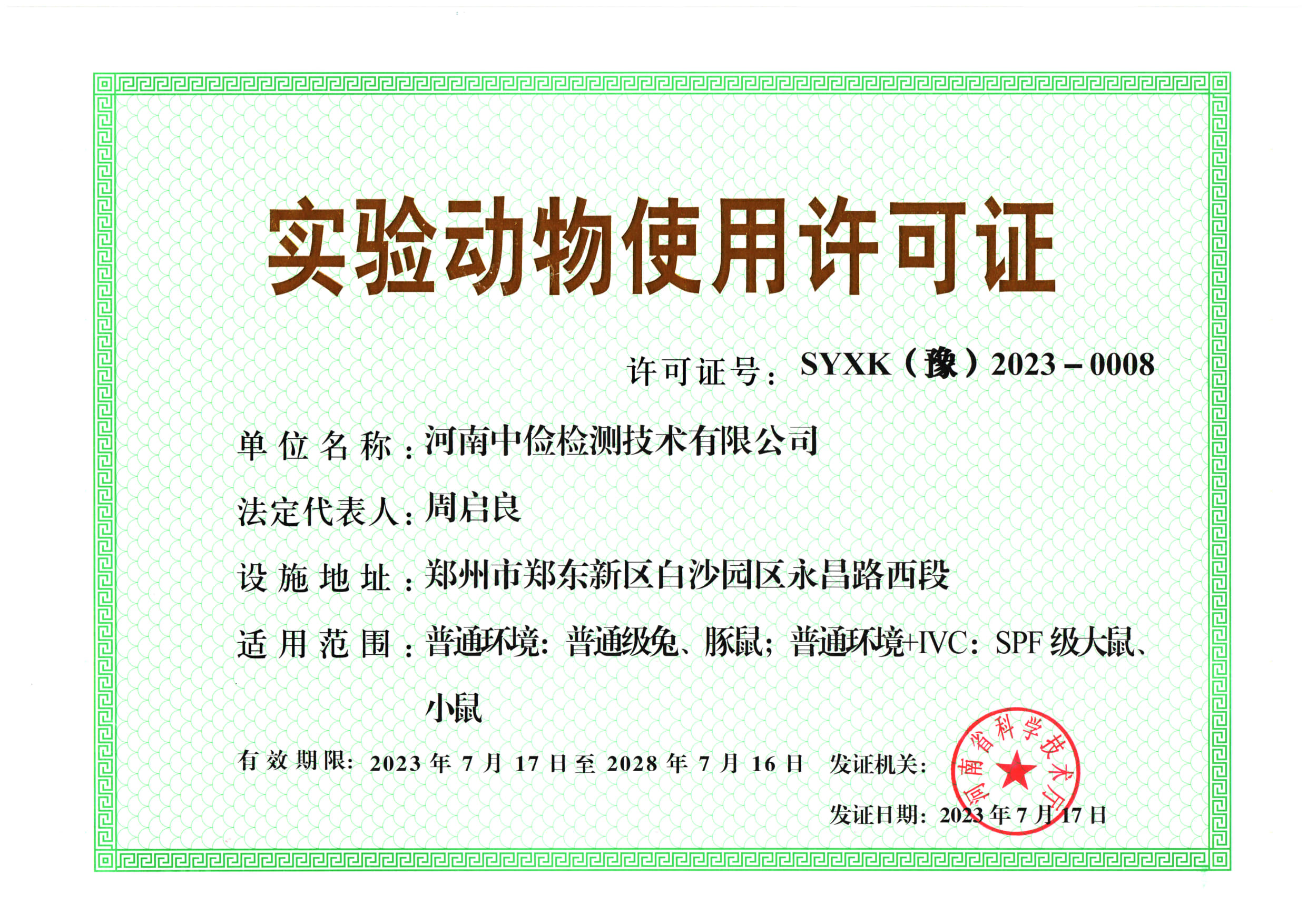 - 喜報!河南中儉檢測取得新的實(shí)驗(yàn)動物使用許可證!